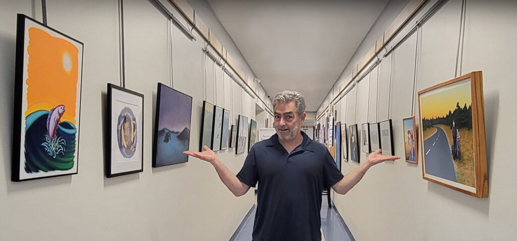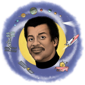 Many of these works from the 1990’s were created with pencil, color pencils, and acrylic paints. In those days, with no Internet, there was plenty of time to focus on producing details works in traditional media. However, there is one new piece (“Portrait of Neil deGrasse Tyson”, iPad/Digital Print, 2025) that the artist chose to include in this collection as an example of where digital skills can boost an artist’s speed and ability to iterate. This work began as a black and white digital pencil portrait. But the final works were delivered in multiple formats, in color, and ready for print AND web publication.
